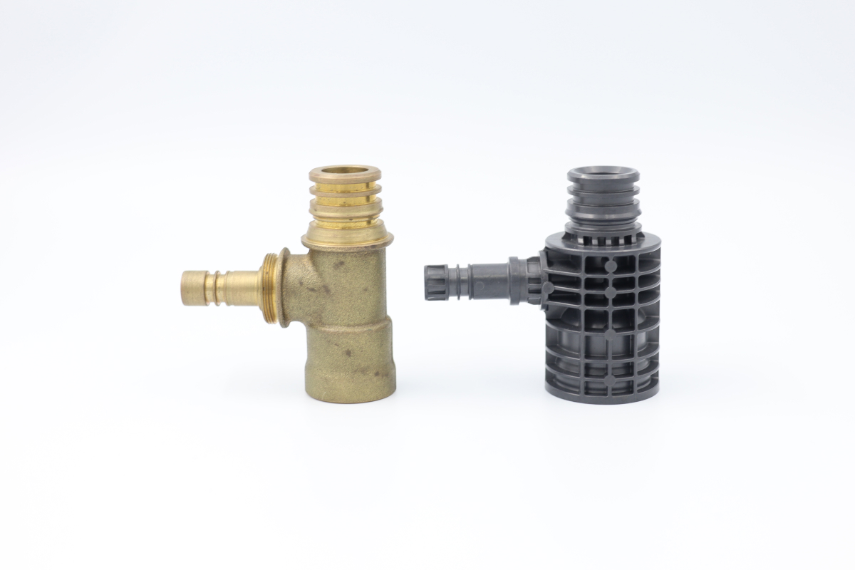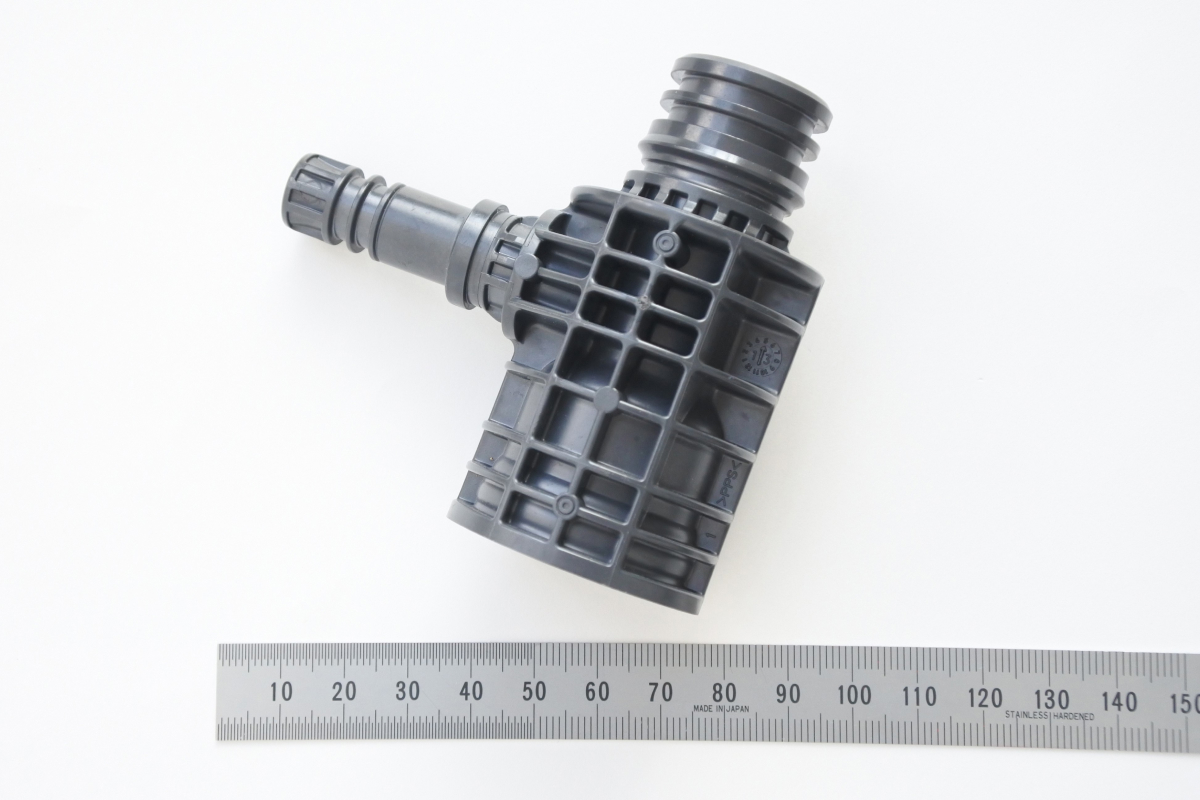 金属部品をPPS樹脂化し、70%もの大幅なコスト削減と80%もの重量削減を実現。課題となるガス抜きにも、独自の脱気弁機構で対応し、高品質を維持します。入れ子間の隙間やPL面の精度を極限まで高め、バリのない製品を提供します。